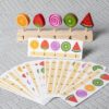 Ce jeu d’imitation en bois invite l’enfant à nourrir un petit ours à l’aide de différents aliments colorés.